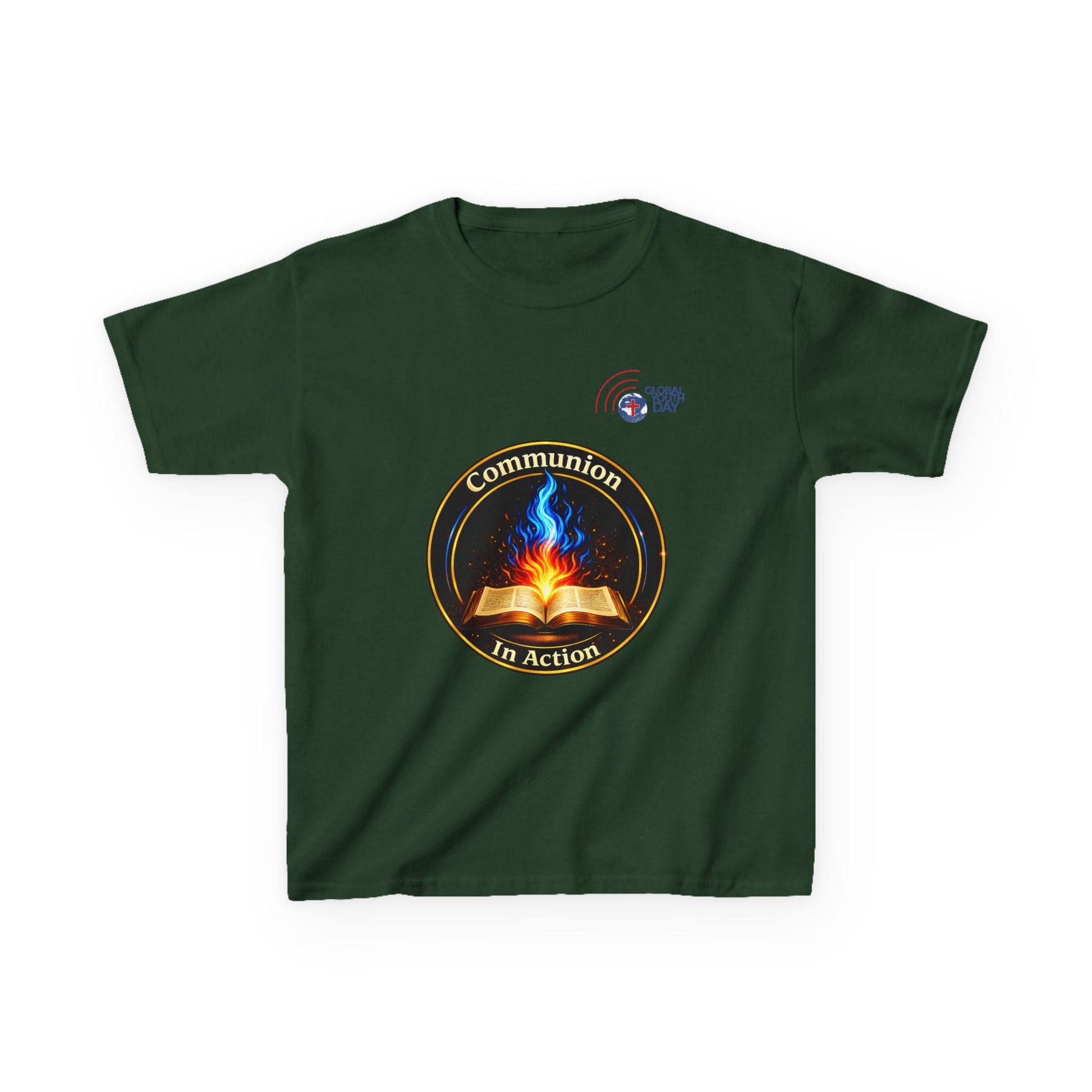 This soft, midweight kids tee carries a quiet confidence—faith expressed through belonging, purpose, and movement. A warm, glowing emblem on the chest pairs with a luminous flame-and-book motif on the back, telling a story of God’s Word alive and faith lived out in action. The design feels inviting rather than loud, encouraging conversation and connection wherever it’s worn.
